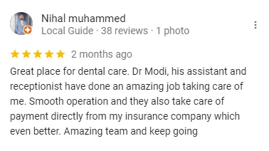 With extensive training in dental implant procedures, Dr. Modi offers comprehensive dental implant services to his patients. Additionally, he holds a minimal sedation license, ensuring a comfortable experience for anxious patients.
