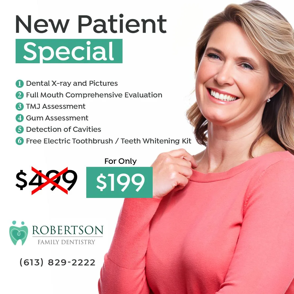 This offer is available to all new patients at Robertson Family Dentistry who have not previously received services from our clinic.